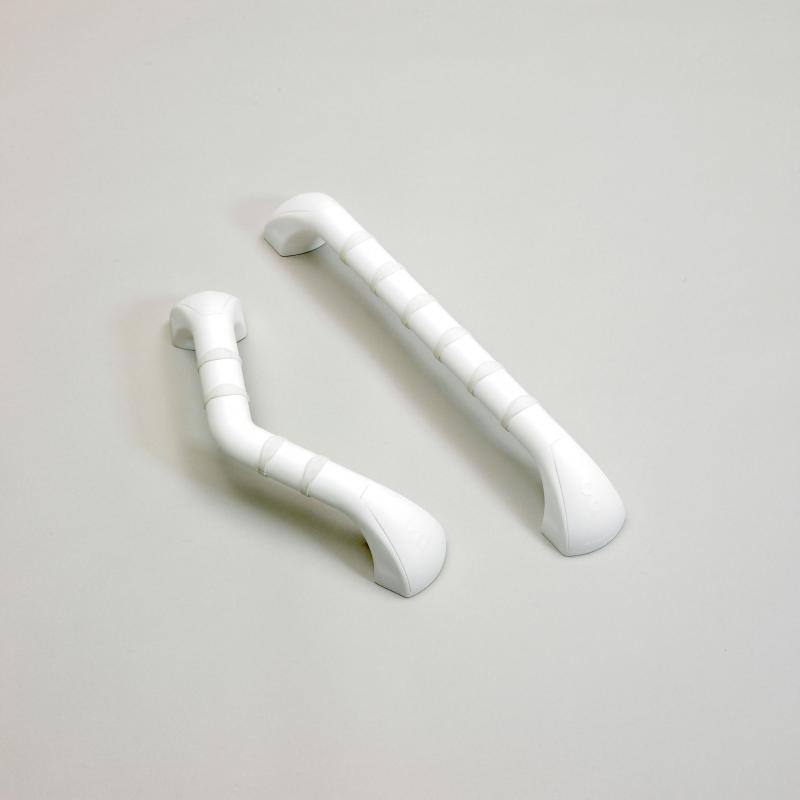 Heel stevige beugel met een kern van aluminium. Ook met vochtige handen is er door de speciale ribbel een perfecte greep. De gebogen versies zijn ook zeer nuttig in het toilet. Ø greep is 3,5 cm.